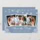 Dusty Blue String Lights und Lace 3 Foto Save the Date Verlobung Announccard