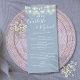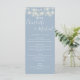 Elegante dustig blaue Hochzeitsmenükarte mit hübschen Saitenleuchten und Signaturstil-Namen. Diese moderne Speisekarte kann mit Ihren Informationen in schicken weißen Schriftzeichen personalisiert werden. Entwickelt von Thisisnotme©