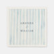 Elegant dusty blue striped wedding napkin featuring a soft watercolor pattern and personalized names. This minimalist design adds a refined and modern touch to your wedding table setting.