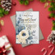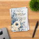 Eine raffinierte Acrylhochzeit mit minimalistischem böhmischen Design mit sanften Aquarellakzenten in staubigen Blau, Creme und blassgelb. In der Mitte befindet sich eine zarte cremefarbene Blüte, umgeben von luftigen Eukalyptus-Blätter und goldenen Wildblumen. Der saubere, weiße Hintergrund und die subtilen Pinselstriche-Texturen schaffen eine elegante, moderne Ästhetik, perfekt für Paare, die einen zeitlosen und entspannten Hochzeitsstil suchen. Dusty Blue für Herbst oder Winter Hochzeit oder zu welcher Jahreszeit auch immer!