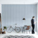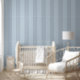 Eine staubblaue und staubige, ultra breite, 1,5 cm gleichmäßig gestreifte Tapete.
