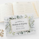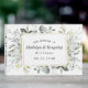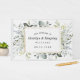 Das Design besticht durch einen eleganten, goldfarbenen geometrischen Rahmen auf der Vorderseite mit Eukalyptus- und Blumengrün-Blätter in Grün-, staubigen Blau-, Grautönen und mehr.