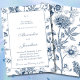 Fügen Sie Ihrem besonderen Tag eine Touch zeitlosen Charmes mit dieser personalisierten französischen Hochzeitsfeier hinzu, die wunderschön als Ergänzung zu einem Vintagen Blumenthema gestaltet wurde. Dieses klassische und dennoch moderne Design besticht durch staubblaue Blumen, delikate Blätter und ein anmutiges Set mit Schmetterlingen vor einem knusprigen, weißen Hintergrund. Inspiriert von toile de jouy Stil und botanischen Gartenmotiven, verbindet dies Eleganz mit natürlicher Schönheit. Der Kalligraphie-Script-Schriftart fügt eine raffinierte Touch hinzu, die sich ideal für Paare eignet, die eine klassische, elegante und moderne Ästhetik mit französischem Flair suchen.