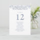 Elegantes Vintages Zierrahmen-Design mit ausgeklügeltem Serif-Schriftart in staubblauer Farbe, einfachen und klassischen, großartigen Hochzeitstisch-Tischkarten für moderne klassische Hochzeiten, romantische Vintage Hochzeiten und traditionelle Hochzeiten. Sehen Sie sich alle passenden Stücke in der Sammlung an.