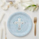 Dusty Blue Watercolor Blumenkreuz Taufe Pappteller