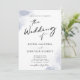 Alles in einem QR-Code UAWG Chic Moderne Black Calligraphy Dusty Blue Watercolor Hochzeitsempfehlung... Unsere trendige minimalistisch dusty blue watercolor wash Hochzeitseinladung beinhaltet moderne Kalligraphie-Skripte kombiniert mit Serif- und Sans-Serif-Text für eine einfache und schicke Hochzeitseinladung. Auf der Rückseite der Einladung wird auch der QR-Code Ihrer Hochzeitswebsite sowie die URL der Website selbst angezeigt, die es Ihren Einladenden ermöglicht, einfach online zu UAWG und alle Details, die normalerweise in einem Hochzeitspaket gesendet werden, einzusehen. Das Beispiel QR-Code-Grafikvorlage und alle Beispieltexte (außer den grafischen Kalligrafieelementen) können mit eigenen Informationen über die Personalisierungsvorlage leicht überarbeitet werden.