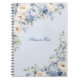 Dusty Blue Watercolor Elfenbeinfarben Blume Verlasst Rustikales Notebook. Leicht personalisiert zu sein. Schriftart Stil, Größe und Farben können geändert werden. Matching-Elemente verfügbar.