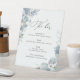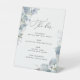Dusty Blue Watercolor Floral Wedding Bar Menu Sockelschild