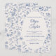 This stunning wedding invitation features a delicate, hand-painted watercolor floral border in a sophisticated dusty blue palette. The design centers your details within a classic oval frame, creating a perfect balance between romantic botanical elements and clean, modern typography.