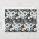 Elegante staubblaue und weiße Aquarellfarben-Rose mit einem nahtlosen Rose-Muster auf der Rückseite mit einem personalisierenden Textfeld.