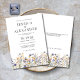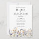 Diese Dusty Blue Watercolor Wildblumen Elegant Wedding Invitation zeigt zarte Aquarellfarben-Wildblumen in staubblauer, lila und gelber Farbe auf weißem Hintergrund, ergänzt durch zeitgenössische Typografie und Skriptkalligraphie. Das formelle Design und die Formulierung fügen Ihrer Hochzeitsfeier eine Touch der Eleganz hinzu.