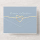 Moderne und minimalistisch staubblaue Hochzeitseinladung mit elegantem goldenen Seilherz, sauberer Typografie und Platz für UAWG, Foto und Hochzeitsdetails. Ein romantisches und stilvolles Design mit allem in einem Stück! Für Hilfe oder Anpassung wenden Sie sich bitte an bpkolman@gmail.com.