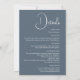 Set den Ton für Ihren besonderen Tag mit der Dusty Blue Wedding Einladung. Mit einem ruhigen, staubblauen Hintergrund und eleganten weißen Schriftzeichen präsentiert diese Einladung die Namen der Paare, das Hochzeitstag und den Veranstaltungsort auf der Vorderseite. Auf der Rückseite finden Sie zusätzliche Details für Ihre Gäste, die alles behalten haben, was für ein stilvolles Ambiente sorgt. Ideal für moderne, klassische oder romantische Hochzeiten, bringt diese Einladung ein elegantes, zeitloses Ambiente in Ihre Hochzeitsstätte.