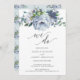 Dieses Design zeichnet sich durch eine wunderschöne staubblaue, blumengeschmückte Illustration und elegante Schriftart aus! Wir machen Hochzeitseinladung. Sehen Sie sich die gesamte Kollektion für passende Artikel an!