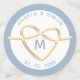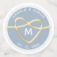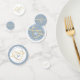 Elegante, moderne, minimalistisch staubige blaue Hochzeitsfeier Konfetti mit Monogramm - Initial, Namen von Braut und Bräutigam und goldenes Seilherz.