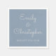 Dusty Blau und Weiß Brauch Hochzeit oder Empfang Abendessen Napkins. Der Text der staubblauen, einfachen und eleganten Napkins kann aktualisiert und mit Ihrem Namen und Hochzeitsdatum angepasst werden.