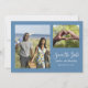 Das Save the Date ist schlicht und elegant in Blau und Weiß gehalten. Es wird wunderschön aussehen mit einfachen Kleinigkeiten von Babyatmen oder als Ergänzung zu einem bunten Bouquet Ihrer Lieblings-Blume. Der QR-Code macht es den Gästen leicht, die Details für Ihren besonderen Tag zu bekommen.