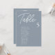 Moderne Blue Wedding Table Chart Cards sind die perfekte Touch für Ihren Hochzeitsempfang. Führe deine Gäste mit diesem einzigartigen Sitzplan zu ihren Plätzen. Die Karten sind ideal zum Aufhängen oder Anzeigen auf einem Brett oder einer Wand. Das Design verfügt über einen minimalen Script-Schriftart mit eleganter San-Serife in Weiß auf blauem Hintergrund. Das Design ist beidseitig bedruckt.