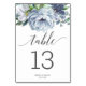Helfen Sie Ihren Gästen, sich mit diesen wunderschönen doppelseitigen Tischnummer-Karten schnell zurechtzufinden. Bearbeiten Sie einfach die Zahlen, Namen und Datum! Dieses Design besticht durch einen wunderschönen, staubblauen Blumenstrauß und einen eleganten Script-Schriftart.