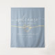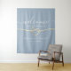 Elegantes, modernes, minimalistisch staubblaues Blau empfängt Sie in unserer Hochzeitskulisse mit goldenem Seilherz und einfacher handgeschriebener Schrift.