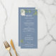 Das moderne Hochzeitsmenü in Blau und Weiß der Blume, ein elegantes und raffiniertes Angebot, das Ihre Empfang mit zeitgenössischer Eleganz bereichert. Die Speisekarte bietet einen auffallenden, staubblauen Hintergrund mit minimalistisch-weißen Blume und schafft einen stilvollen Kontrast, der moderne Eleganz verkörpert. Das Design ist sorgfältig gestaltet, um jedes Hochzeitsdekor zu ergänzen, von minimalistischem Chic bis hin zu urbaner Eleganz.