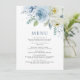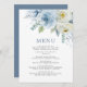 Dusty Blue & White Rose Blume Hochzeitmenü Menükarte