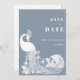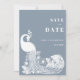 This gorgeous pastel colors wedding invitation design features dusty blue and white royal peacock bird elegant Wedding Save the Date invitations that are perfect for any classy and sophisticated ceremony. This exquisite geometric design is ideal for the trendy and stylish couple. Customize this design with your message and personalized information. All designs are printed.