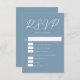 Diese staubige blaue RSVP Karte mit Essensauswahl lässt Ruhe für eine Hochzeit am Meer im Sommer. Personalisieren Sie diese hellgrauen blauen Karten mit eleganter, minimalistischer Typografie, um Ihre ruhige Bridal-Farbgebung.