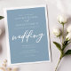 Diese staubige blaue Einladung verströmt Ruhe für eine Hochzeit am Meer im Sommer. Diese hellgrauen Blautöne laden mit eleganter minimalistischer Typografie zu einer gelungenen Bräunungsfarbe ein.