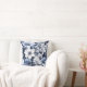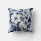 Schönes Dekorationskissen mit staubblauen und weißen Blume auf marineblau-blauem Hintergrund. Ideal für Ihre Zuhause im Winter.