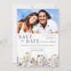 Dusty Blue Wildblumen Elegant Zwei-Foto Hochzeit Save The Date