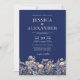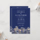 Dusty Blue Wildblumen in einer QR Navy Hochzeit Einladung