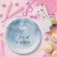 Diese eleganten, modernen Kalligraphie-Teller mit rustikalem Blumendesign auf einem ruhigen, staubblauen Aquarell-Hintergrund, ideal für moderne rustikale Hochzeiten, Frühjahrs- oder Winterhochzeiten. Sehen Sie sich alle passenden Stücke in der Sammlung unten an.