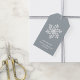 Individuell bedruckte Geschenketiketten mit einem schlichten weißen Schneeflocken auf blaugrauem Hintergrund. Verwenden Sie die Designtools, um den Text zu bearbeiten, die Schriftart und Farben zu ändern oder Ihr eigenes Foto hochzuladen, um Ihre eigenen personalisierten Weihnachtsgeschenktags zu entwerfen.