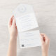 Dusty Blue Wreath Monogram QR Code Elegant Wedding All In One Einladung