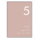 Dieser Dusty Boho | Rose Tischnummer ist perfekt für Ihre farbenfrohe rustikale Hochzeit. Das schlichte, moderne Design mit zeitgenössischer minimalistischer Schrift und einer staubigen Farbpalette in der Rose verleiht diesem Produkt ein klassisches böhmisches Ambiente. Behalt es so, wie es ist, oder wähle es aus, um es mit Kunstwerken oder Grafiken deiner Wahl zu personalisieren. Sie können auch andere Produkte in dieser Kollektion sehen, um Ihre ganze Hochzeit zusammen zu bringen!