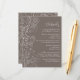 Diese elegante Hochzeitsdetails-Karte kann mit wichtigen Informationen für Ihre Gäste wie Hochzeitsempfang, Hotelunterkunft, Transport, Anfahrtsbeschreibung, Kleiderbekleidung, Reiseroute, Registrierung und mehr personalisiert werden. Das Design zeichnet sich durch ein zartes blumengeschmücktes Dekor aus, mit Blume, Vögeln und Blätter auf staubbraunem grauem Hintergrund. Der Text kombiniert handgeschriebene Skript- und Serif-Schriftart für ein stilvolles und modernes Aussehen. Ideal für eine Hochzeit im Herbst im Winter oder Herbst.