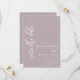 Diese staubige Lavendel-Save the Date-Karte verfügt über einen modernen Script-Schriftart, der eine Touch zeitloser Eleganz verleiht. Das minimalistische Design behalte den Fokus auf Ihre Namen und Ihr Hochzeitstermin, was eine klare und stilvolle Aussage macht. Diese Karte ist perfekt für jede Jahreszeit und ergänzt eine Vielzahl von Hochzeitsthemen, von romantisch und elegant bis modern und raffiniert. Personalisieren Sie es mit Ihren Namen und Hochzeitsdatum für einen rett-the-Date, der Ihren einzigartigen Stil widerspiegelt.