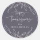 Aktualisiertes Design. Um sich mit meinem Erntedank Einladungen abzustimmen - oder die Aufkleber/Umschlag Aufkleber selbst zu benutzen. Handgezeichnete Blätter bilden einen zarten Rahmen für die Nachricht "Glückliches Dankeschön" und Ihren personalisierten Text. Dieses Aufkleber-Design ist in anderen Farben und in einer Version mit vollständig anpassbarem Text erhältlich.