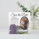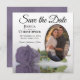 Diese wunderschöne, moderne Blume spart die Dattelkarten und ist der perfekte Weg, um Ihre Freunde und Familie über Ihre kommende Hochzeit lassen. Sie zeichnen sich durch ein elegantes Design aus, das durch einen Single mit einer lang gesteppten, lila oder lavendelfarbenen Rose besticht, die sich in einem Wasserbecken mit Wellen und Wellen widerspiegelt. Ihr Foto ist in einem ovalen Rahmen auf klassisch weißem Hintergrund gehalten. Die Beschriftung liest sich Save the Date mit Leerzeichen für Ihren Namen, das Datum und den Ort. Die Rückseite ist lila grau und marmoriert.