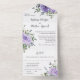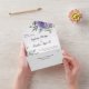 Alle in einer Hochzeitsfeier sind mit einem modernen, floralen Aquarell-Design mit staubigen lila Rose und Eukalyptusblättern ausgestattet. Personalisieren Sie Ihren Text. Weitere passende Schreibwaren- und Hochzeitsempfangsprodukte stehen ebenfalls zur Verfügung.