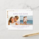 Zwei Fotos und vier Textzeilen auf der Vorderseite lasse Ihnen, Ihre einzigartige Save the Date Postkarte schnell und einfach zu entwerfen. Ein drittes Foto wird auf der Postkarte zusammen mit mehr Text zum Anpassen gelegt.