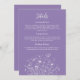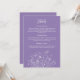 Diese lila und weiße Gehäusekarte bietet Ihnen alle Details für Ihre Gäste. Die fett-weiße Schrift und die weißen Wildblumen schaffen ein elegantes Motto für Ihren Hochzeitstag. Alle Informationen können individuell angepasst werden und ein QR-Code auf der Rückseite steht Ihren Gästen zur Verfügung, um mehr Informationen auf Ihrer Website zu sehen