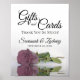 Dieses schöne Schild lasse Ihren Hochzeitsgästen zu wissen, wo sie ihre Geschenke und Karten verlassen haben. Das elegante und elegante Design mit einer Single-staubigen mauvrosa-farbenen Rose, die in einem Wasserbecken reflektiert oder spiegelt. Es gibt eine kurze Danksagung zusammen mit den Namen des Paares.