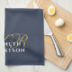 Dusty Navy Blue Monogram Minimalist Gold White Men Geschirrtuch