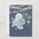 Das Design zeichnet sich durch eine bedruckte Farbe mit Blumengestein in den Farbtönen verstaubt blau und marineblau aus, und die Rose blühen mit einer Reihe von Lichtern auf blauem Aquarell.. Ideal für Ihre Hochzeitsfeiern!