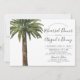 Ein am Strand inspiriert Hochzeitsessen mit Probe laden zum Aquarellbild einer staubigen Palme aus Single ein. Auf der Seite sind Ihre einzigartigen Hochzeitstage Details. Auf der Rückseite sind sandige braune Streifen, um die Vorderseite der Einladung zu ergänzen.