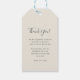 Ein einzigartiges Set von Geschenketiketten, die speziell auf Ihre zukünftige Hochzeit an der wunderschönen Küste oder auf der Insel zugeschnitten sind. Sie sind mit einem Gruß auf der Vorderseite und Ihrer einzigartigen Hochzeitsbotschaft an Ihre Gäste auf der Rückseite ausgestattet. Auf der Rückseite des Hotels befindet sich ein wunderbar sanfter, brauner Schatten, der von einer Aquarellpalme in weißem Hintergrund geprägt ist.