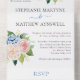 Diese Einladungen für Hochzeitsfeiern sind in modernem Aquarell-Blumendesign mit blauen Hydrangeas, Blütenerbsen, rosa Rosen und grünem Blattwerk gehalten. Personalisieren Sie Ihren Text. Auch Matching-Schreibwaren sind erhältlich.
