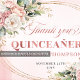 Elegant boho Quinceañera thank you card in blush pink and rose gold with floral eucalyptus greenery, perfect for expressing gratitude after a Sweet 15 celebration.